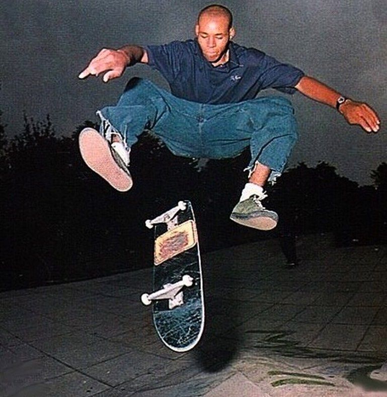 Typical setup of the era: egg-shaped decks and micro wheels | Ray Barbee – varial heel.